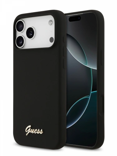 Накладка Guess для iPhone 17 Pro Max Liquid silicone Gold metal logo (MagSafe), Hard Black (GUHMP17XSMBSLK)