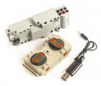 А набор электрика входит блок 3-серии: это аккумулятор, приемник радиосигнала и мотор для вращения по оси. Управляется Mould King Dodge Challenger с пульта ДУ (батарейки ААА учтите в комплект не входят), также производить управление можно с помощью специального приложения.